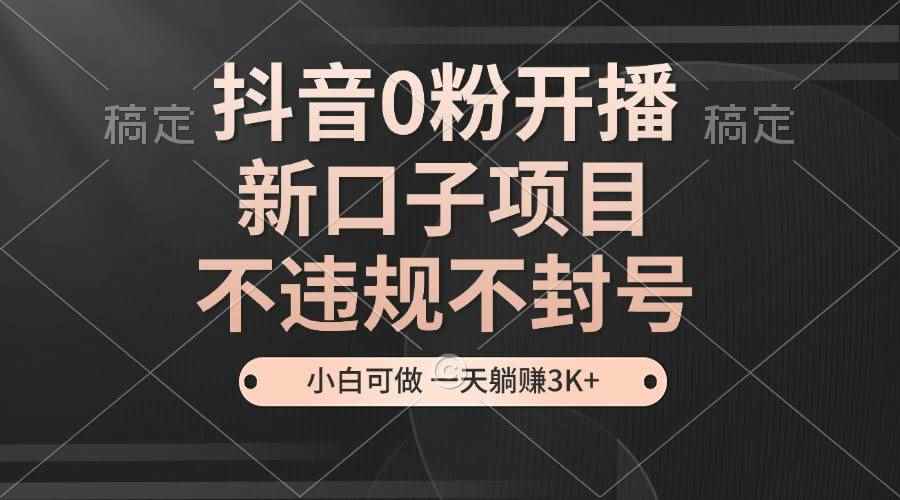 (13301期)抖音0粉开播,新口子项目,不违规不封号,小白可做,一天躺赚3K+