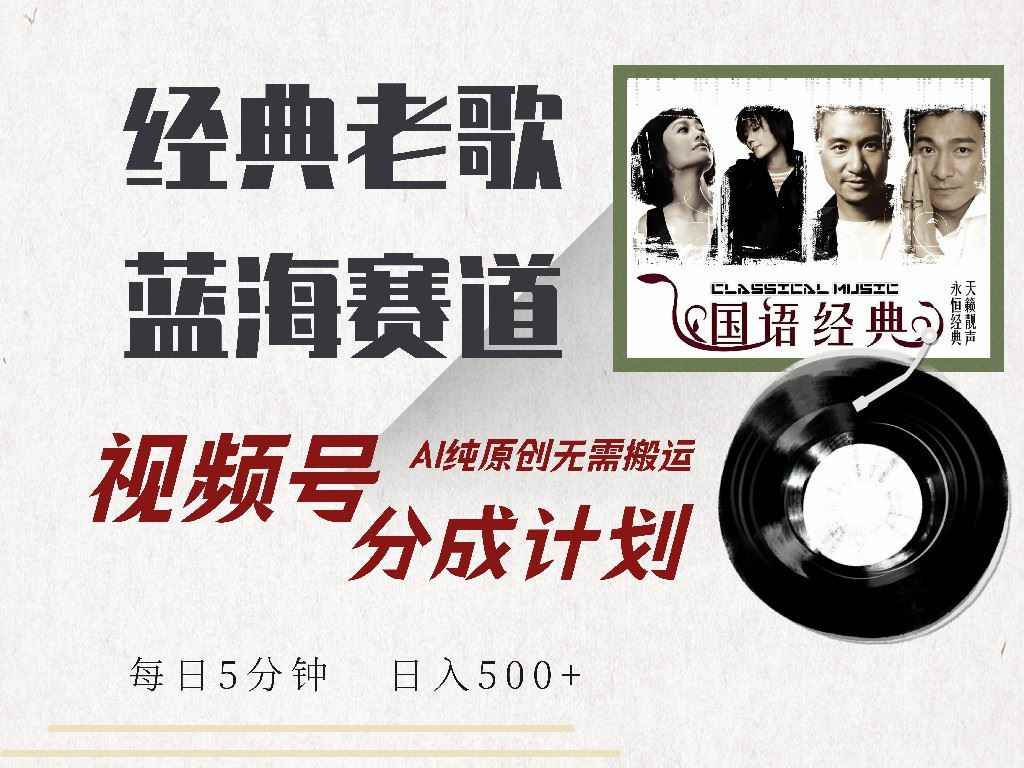 (14474期)视频号经典老歌赛道,靠视频号分成计划收益拿到手软,AI纯原创、无脑搬…