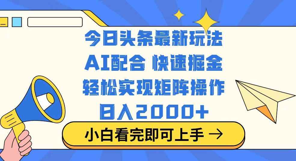 (14463期)今日头条最新玩法,思路简单,复制粘贴,轻松实现矩阵日入2000+