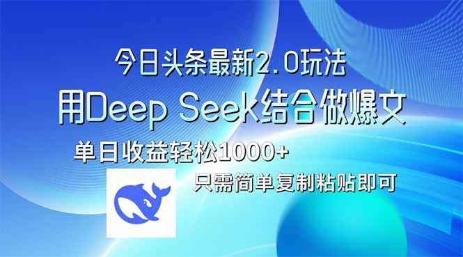 (14117期)今日头条最新2.0版本,用Deep Seek结合今日头条做爆文,单日收益轻松10… |