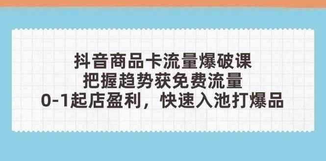 [短视频运营] (14532期)抖音商品卡流量爆破课:把握趋势获免费流量,0-1起店盈利,快速入池打爆品 |