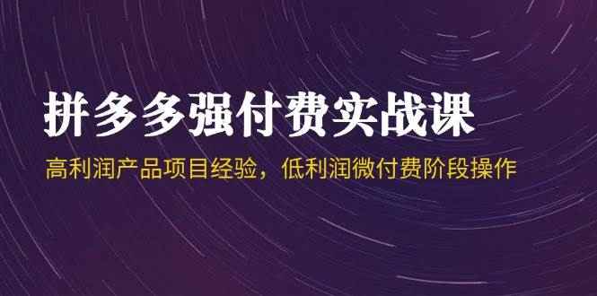 [国内电商] (14874期)拼多多强付费实战课-44期,高利润产品项目经验,低利润微付费阶段操作 |
