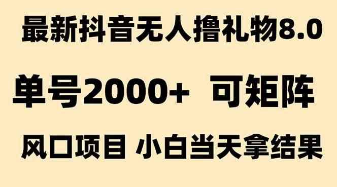 (15311期)抖音无人撸礼物8.0玩法 全新风口 见效果快 全无人 单号当天产出2000+
