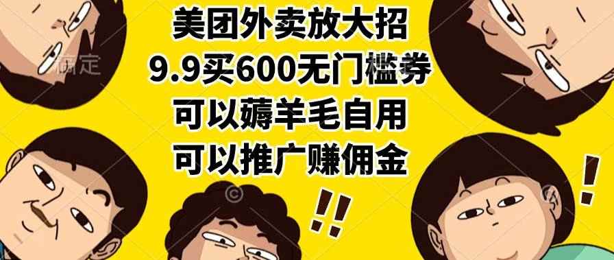 [热门给力项目] (15352期)美团外卖放大招,9.9买600无门槛券,可以薅羊毛自用,可以推广赚佣金 |