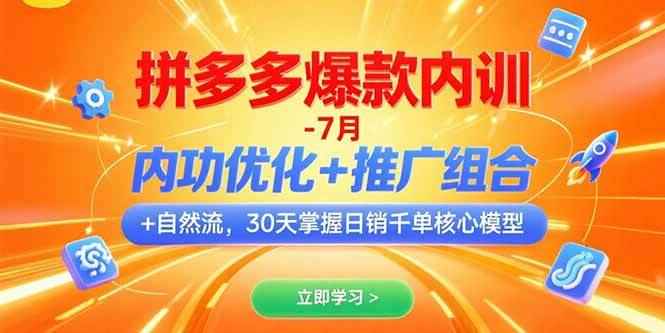 [国内电商] (15402期)拼多多爆款内训-7月 内功优化+推广组合+自然流 30天掌握日销千单核心模型 |