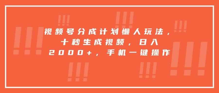 [短视频运营] (15607期)视频号分成计划懒人玩法,十秒生成视频,日入2000+,手机一键操作 |