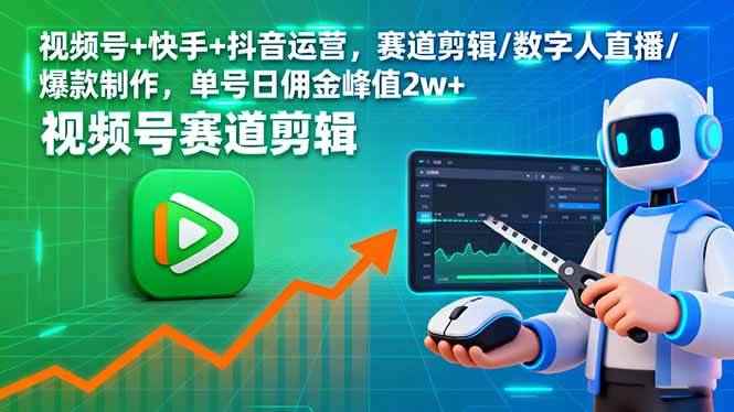 (16055期)视频号+快手+抖音运营,赛道剪辑/数字人直播/爆款制作,单号日佣金峰值2w+