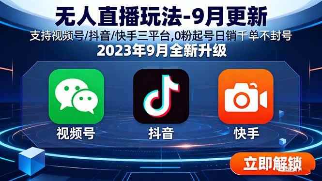 (16041期)无人直播玩法-9月更新 支持视频号/抖音/快手三平台,0粉起号日销千单不封号