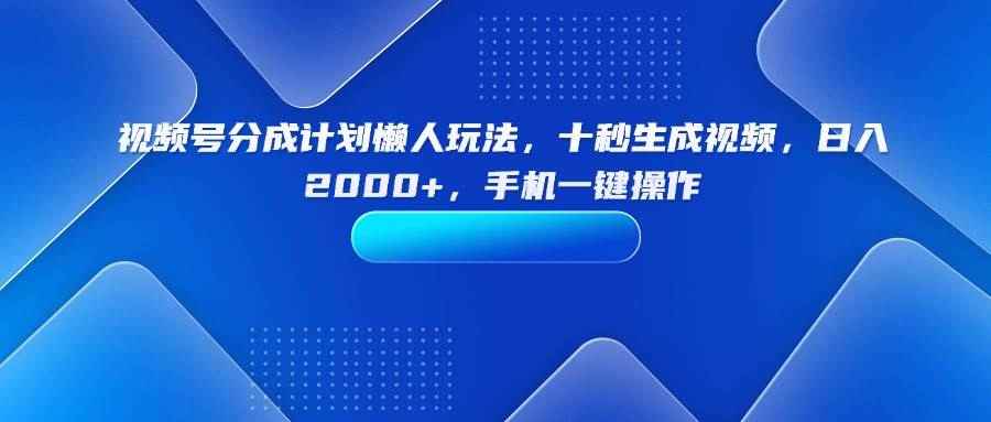 [短视频运营] (15932期)视频号分成计划懒人玩法,十秒生成视频,日入2000+,手机一键操作 |
