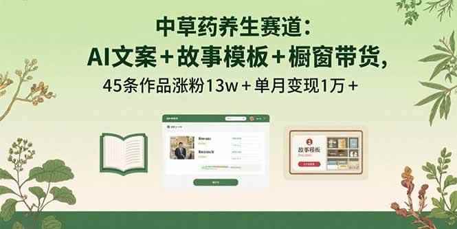 [热门给力项目] (15925期)中草药养生赛道:AI文案+故事模板+橱带货,45条作品涨粉13w+单月变现1万+ |