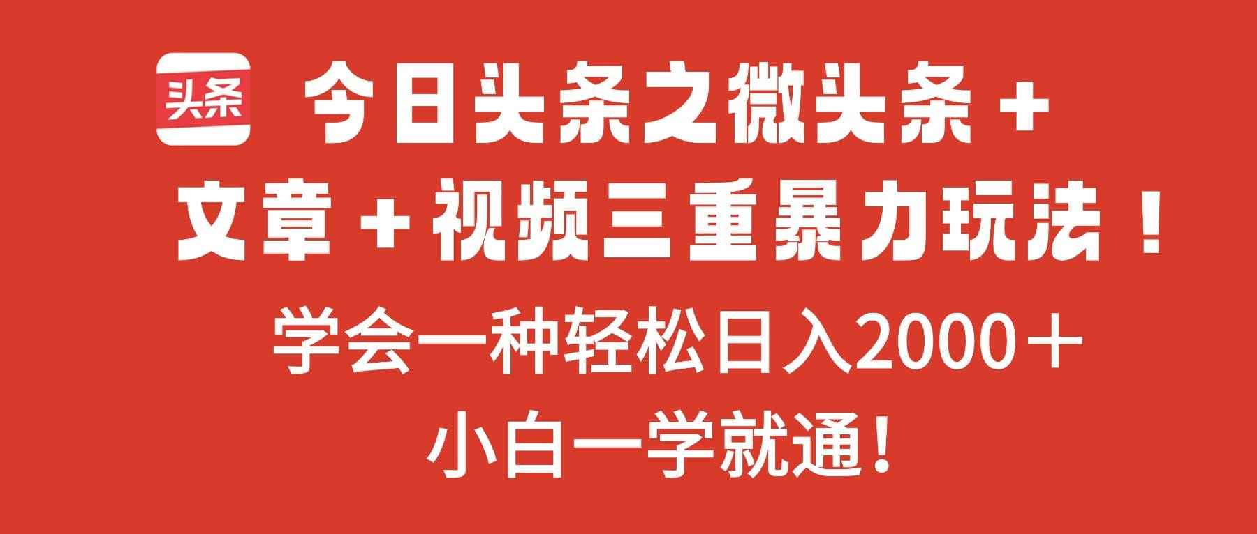 (16556期)今日头条之微头条+文章+视频三重暴力玩法,学会一种轻松日入2000+,… |