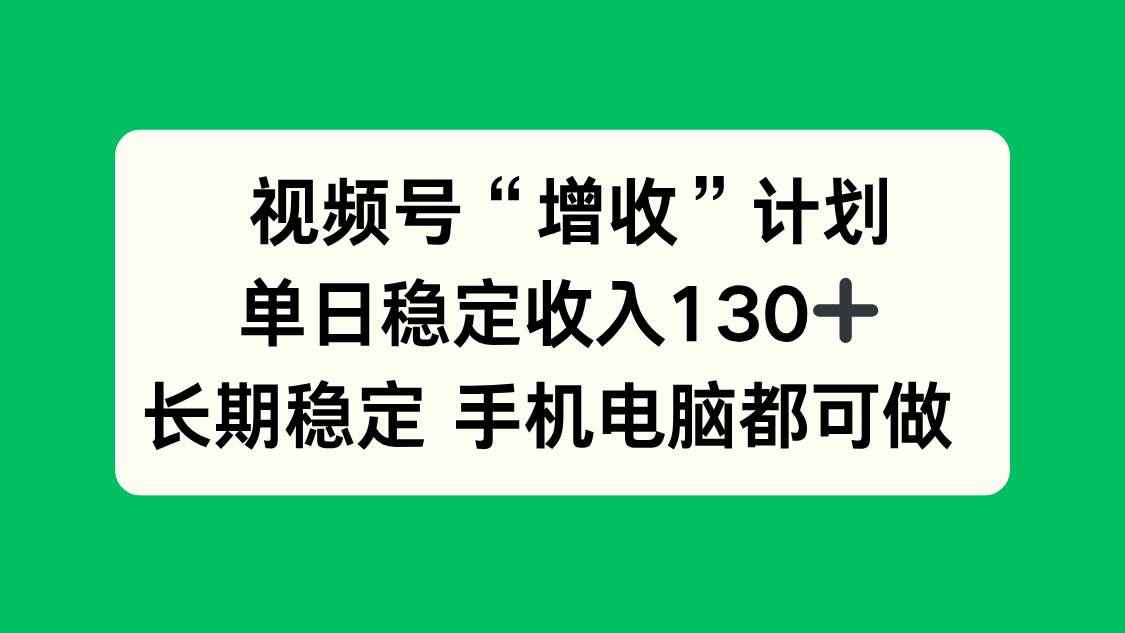 (16579期)视频号“增收”计划,单日稳定收入130十,长期稳定 手机电脑都可做! |